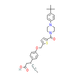 | SMILES | CC#CC(CC(=O)O)c1ccc(OCc2ccc(C(=O)N3CCN(c4ccc(C(C)(C)C)cc4)CC3)s2)cc1 |