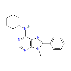 | SMILES | Cn1c(-c2ccccc2)nc2c(NC3CCCCC3)ncnc21 |