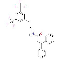 | SMILES | O=C(CC(c1ccccc1)c1ccccc1)NCCCc1cc(C(F)(F)F)cc(C(F)(F)F)c1 |