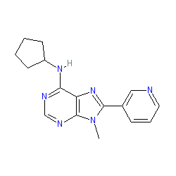 | SMILES | Cn1c(-c2cccnc2)nc2c(NC3CCCC3)ncnc21 |