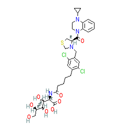 | SMILES | O=C(CCCCc1cc(Cl)c(CN2CSC[C@H]2C(=O)N2CCN(C3CC3)c3ccccc32)cc1Cl)N[C@@H](C(=O)O)[C@@H](O)[C@H](O)[C@H](O)CO |