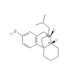 | SMILES | CC(C)CN1CCC23CCCC[C@H]2[C@H]1Cc1cc(O)ccc13 |