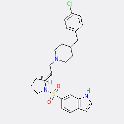 | SMILES | O=S(=O)(c1ccc2cc[nH]c2c1)N1CCC[C@@H]1CCN1CCC(Cc2ccc(Cl)cc2)CC1 |