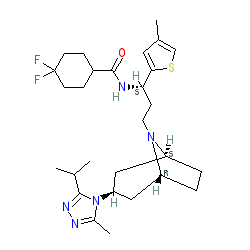 | SMILES | Cc1csc([C@H](CCN2[C@H]3CC[C@@H]2C[C@@H](n2c(C)nnc2C(C)C)C3)NC(=O)C2CCC(F)(F)CC2)c1 |
