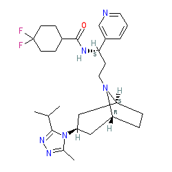 | SMILES | Cc1nnc(C(C)C)n1[C@H]1C[C@@H]2CC[C@H](C1)N2CC[C@H](NC(=O)C1CCC(F)(F)CC1)c1cccnc1 |