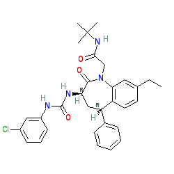 | SMILES | CCc1ccc2c(c1)N(CC(=O)NC(C)(C)C)C(=O)[C@H](NC(=O)Nc1cccc(Cl)c1)C[C@@H]2c1ccccc1 |