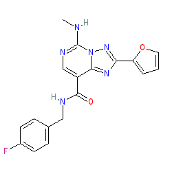 | SMILES | CNc1ncc(C(=O)NCc2ccc(F)cc2)c2nc(-c3ccco3)nn12 |