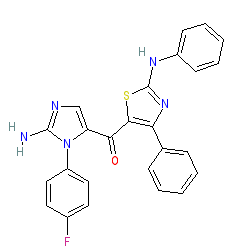 | SMILES | Nc1ncc(C(=O)c2sc(Nc3ccccc3)nc2-c2ccccc2)n1-c1ccc(F)cc1 |