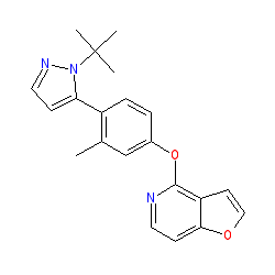 | SMILES | Cc1cc(Oc2nccc3occc23)ccc1-c1ccnn1C(C)(C)C |