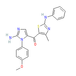 | SMILES | COc1ccc(-n2c(C(=O)c3sc(Nc4ccccc4)nc3C)cnc2N)cc1 |