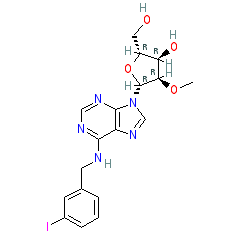 | SMILES | CO[C@@H]1[C@H](O)[C@@H](CO)O[C@H]1n1cnc2c(NCc3cccc(I)c3)ncnc21 |