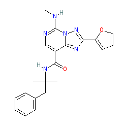 | SMILES | CNc1ncc(C(=O)NC(C)(C)Cc2ccccc2)c2nc(-c3ccco3)nn12 |