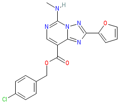 | SMILES | CNc1ncc(C(=O)OCc2ccc(Cl)cc2)c2nc(-c3ccco3)nn12 |