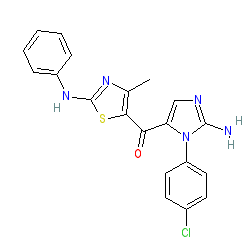 | SMILES | Cc1nc(Nc2ccccc2)sc1C(=O)c1cnc(N)n1-c1ccc(Cl)cc1 |