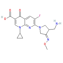 | SMILES | CO/N=C1\CN(c2nc3c(cc2F)c(=O)c(C(=O)O)cn3C2CC2)CC1CN |