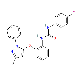 | SMILES | Cc1cc(Oc2ccccc2NC(=O)Nc2ccc(F)cc2)n(-c2ccccc2)n1 |