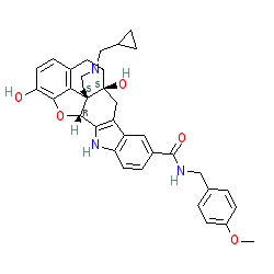 | SMILES | COc1ccc(CNC(=O)c2ccc3[nH]c4c(c3c2)C[C@@]2(O)C3Cc5ccc(O)c6c5[C@@]2(CCN3CC2CC2)[C@H]4O6)cc1 |