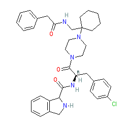 | SMILES | O=C(Cc1ccccc1)NCC1(N2CCN(C(=O)[C@@H](Cc3ccc(Cl)cc3)NC(=O)C3NCc4ccccc43)CC2)CCCCC1 |