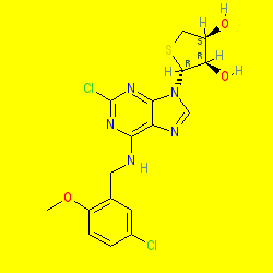 | SMILES | COc1ccc(Cl)cc1CNc1nc(Cl)nc2c1ncn2[C@@H]1SC[C@@H](O)[C@H]1O |