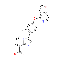 | SMILES | COC(=O)c1cccn2c(-c3ccc(Oc4nccc5occc45)cc3C)cnc12 |