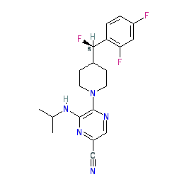 | SMILES | CC(C)Nc1nc(C#N)cnc1N1CCC([C@@H](F)c2ccc(F)cc2F)CC1 |