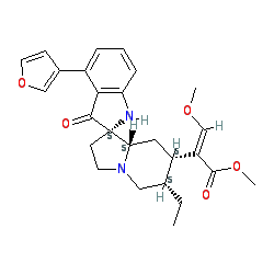 | SMILES | CC[C@@H]1CN2CC[C@]3(Nc4cccc(-c5ccoc5)c4C3=O)[C@@H]2C[C@@H]1/C(=C\OC)C(=O)OC |