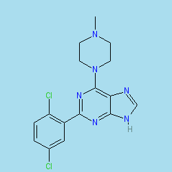 | SMILES | CN1CCN(c2nc(-c3cc(Cl)ccc3Cl)nc3[nH]cnc23)CC1 |