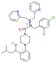 | SMILES | CC(C)CC(O)c1ccccc1N1CCN(C(=O)[C@@H](Cc2ccc(Cl)cc2Cl)N(Cc2ccccn2)Cc2ccccn2)CC1 |