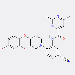 | SMILES | Cc1cc(C(=O)Nc2cc(C#N)ccc2N2CCC(Oc3ccc(F)cc3F)CC2)nc(C)n1 |