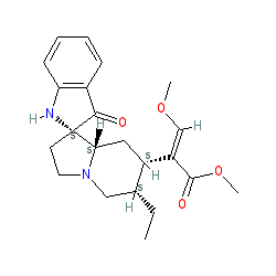 | SMILES | CC[C@@H]1CN2CC[C@]3(Nc4ccccc4C3=O)[C@@H]2C[C@@H]1/C(=C\OC)C(=O)OC |