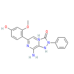 | SMILES | COc1cc(O)ccc1-c1cn2c(=O)n(-c3ccccc3)nc2c(N)n1 |