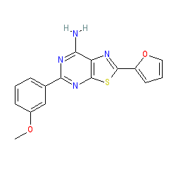 | SMILES | COc1cccc(-c2nc(N)c3nc(-c4ccco4)sc3n2)c1 |