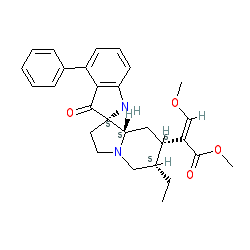 | SMILES | CC[C@@H]1CN2CC[C@]3(Nc4cccc(-c5ccccc5)c4C3=O)[C@@H]2C[C@@H]1/C(=C\OC)C(=O)OC |