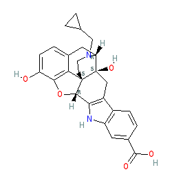 | SMILES | O=C(O)c1ccc2c3c([nH]c2c1)[C@@H]1Oc2c(O)ccc4c2[C@@]12CCN(CC1CC1)[C@H](C4)[C@]2(O)C3 |