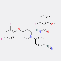 | SMILES | COc1c(F)ccc(F)c1C(=O)Nc1cc(C#N)ccc1N1CCC(Oc2ccc(F)cc2F)CC1 |
