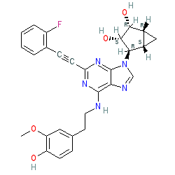 | SMILES | COc1cc(CCNc2nc(C#Cc3ccccc3F)nc3c2ncn3[C@H]2[C@H](O)[C@H](O)[C@@H]3C[C@@H]32)ccc1O |