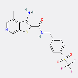 | SMILES | Cc1cncc2sc(C(=O)NCc3ccc(S(=O)(=O)C(F)(F)F)cc3)c(N)c12 |