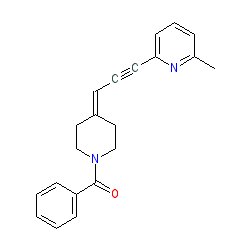 | SMILES | Cc1cccc(C#CC=C2CCN(C(=O)c3ccccc3)CC2)n1 |
