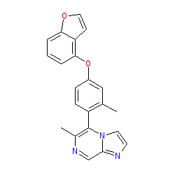 | SMILES | Cc1cc(Oc2cccc3occc23)ccc1-c1c(C)ncc2nccn12 |