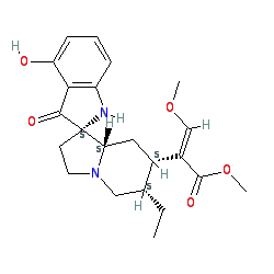 | SMILES | CC[C@@H]1CN2CC[C@]3(Nc4cccc(O)c4C3=O)[C@@H]2C[C@@H]1/C(=C\OC)C(=O)OC |