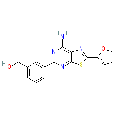 | SMILES | Nc1nc(-c2cccc(CO)c2)nc2sc(-c3ccco3)nc12 |