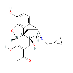 | SMILES | CC(=O)C1=C(O)[C@@H]2Oc3c(O)ccc4c3[C@@]23CCN(CC2CC2)[C@H](C4)[C@]3(O)C1 |