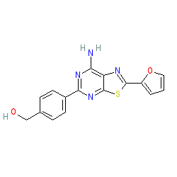| SMILES | Nc1nc(-c2ccc(CO)cc2)nc2sc(-c3ccco3)nc12 |