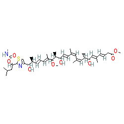 | SMILES | CNC(=O)O[C@@H](CC(C)C)c1nc([C@@H](O)[C@@H](C)/C=C/C=C(\C)[C@@H](OC)[C@@H](C)[C@H](O)/C=C/C(C)=C\C(C)=C/[C@H](C)[C@H](O)/C=C(C)/C=C/CC(=O)OC)cs1 |