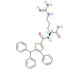 | SMILES | N=C(N)NCCC[C@H](NC(=O)c1cc(-c2ccccc2)c(C(c2ccccc2)c2ccccc2)s1)C(=O)O |