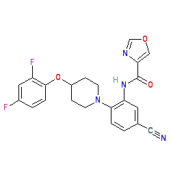 | SMILES | N#Cc1ccc(N2CCC(Oc3ccc(F)cc3F)CC2)c(NC(=O)c2cocn2)c1 |
