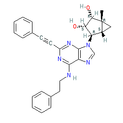 | SMILES | C[C@@]12C[C@@H]1[C@@H](n1cnc3c(NCCc4ccccc4)nc(C#Cc4ccccc4)nc31)[C@H](O)[C@@H]2O |