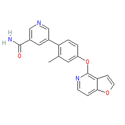 | SMILES | Cc1cc(Oc2nccc3occc23)ccc1-c1cncc(C(N)=O)c1 |