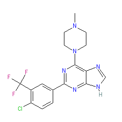 | SMILES | CN1CCN(c2nc(-c3ccc(Cl)c(C(F)(F)F)c3)nc3[nH]cnc23)CC1 |