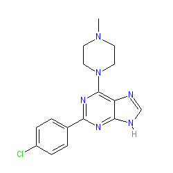 | SMILES | CN1CCN(c2nc(-c3ccc(Cl)cc3)nc3[nH]cnc23)CC1 |